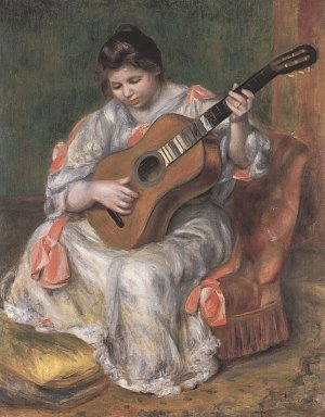 Frau spielt Gitarre Kunstdruck